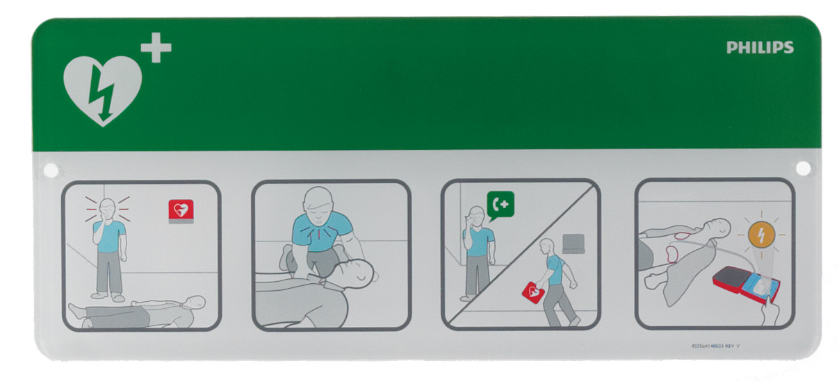 Das AED-Hinweisschild von Philips ist ein unverzichtbares Element für jede öffentlich zugängliche Umgebung. Mit klaren Abmessungen von 26 x 11 cm und einer gut sichtbaren grünen Farbe weist es den Weg zum lebensrettenden AED. Die integrierte Kurzanleitung mit leicht verständlichen Bildern macht es für jeden einfach, im Notfall richtig zu handeln. Ideal für Bürogebäude, Sportvereine, öffentliche Einrichtungen und Schulen,denn dieses Schild sichert die Aufmerksamkeit und Handlungsbereitschaft in kritischen Situationen.