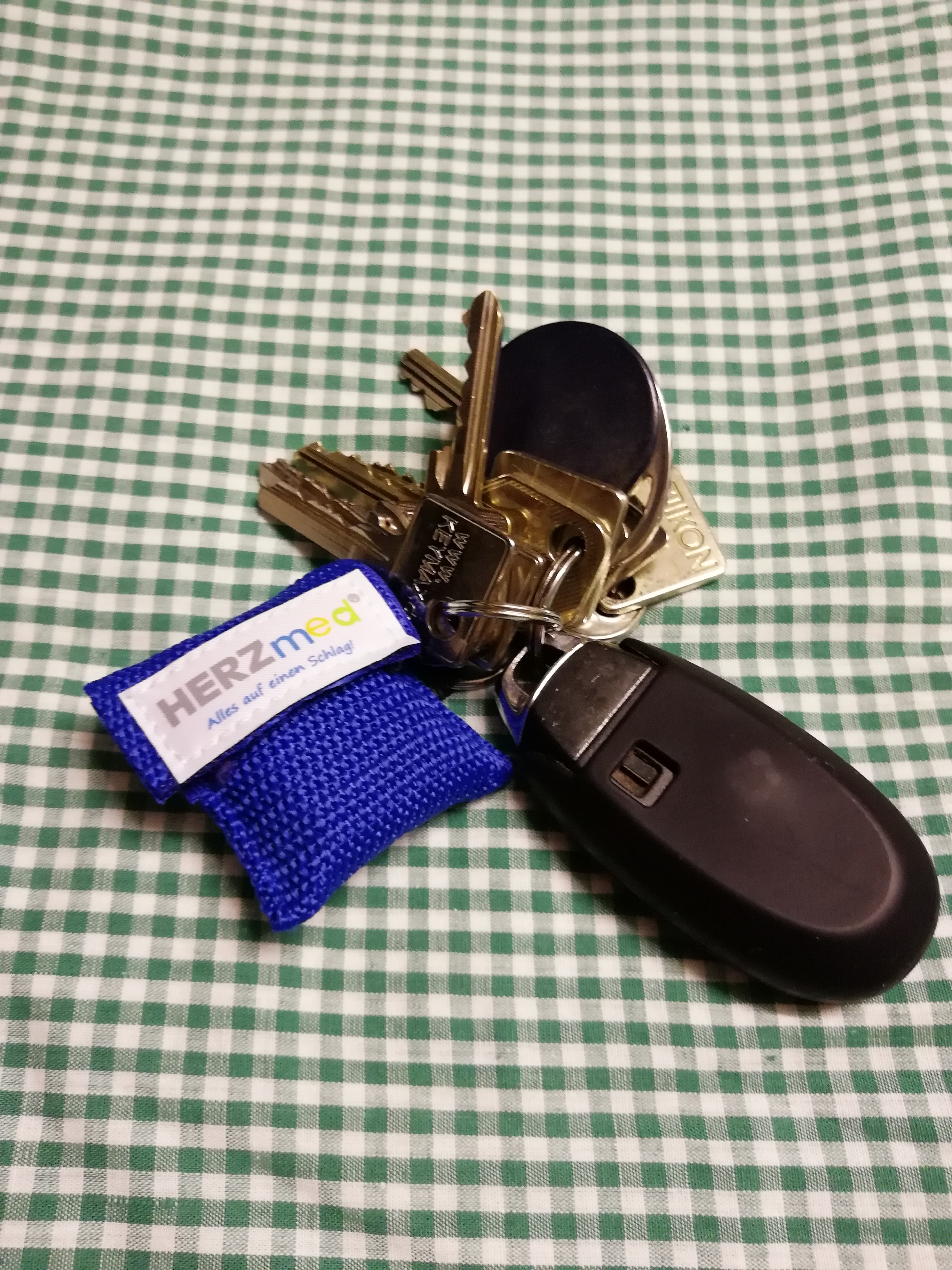 Beatmungstuch im Schlüsselanhänger - HERZMED Logo