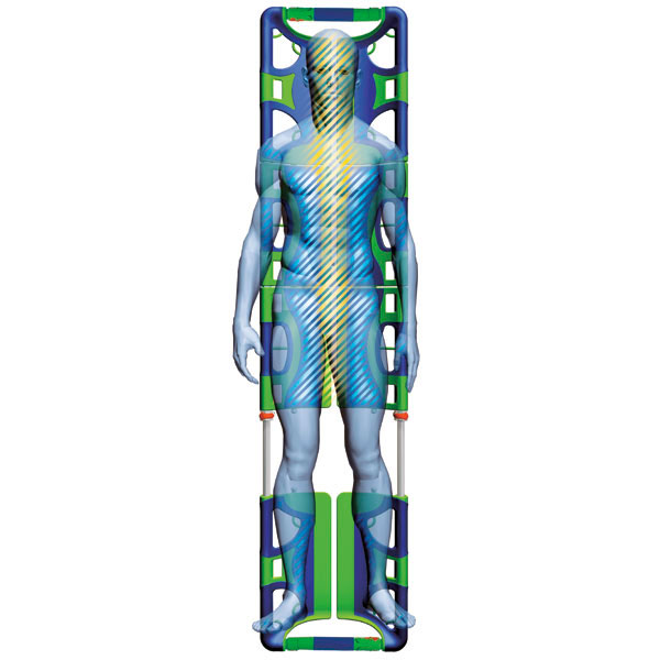 Eine weitere technische Neuheit ist das Gelenkverschluss-System FLEXILOCK. Dadurch kann die Trage in zwei Teile geteilt werden und ermöglicht außerdem Bergungen in extremen Situationen und Positionen.
