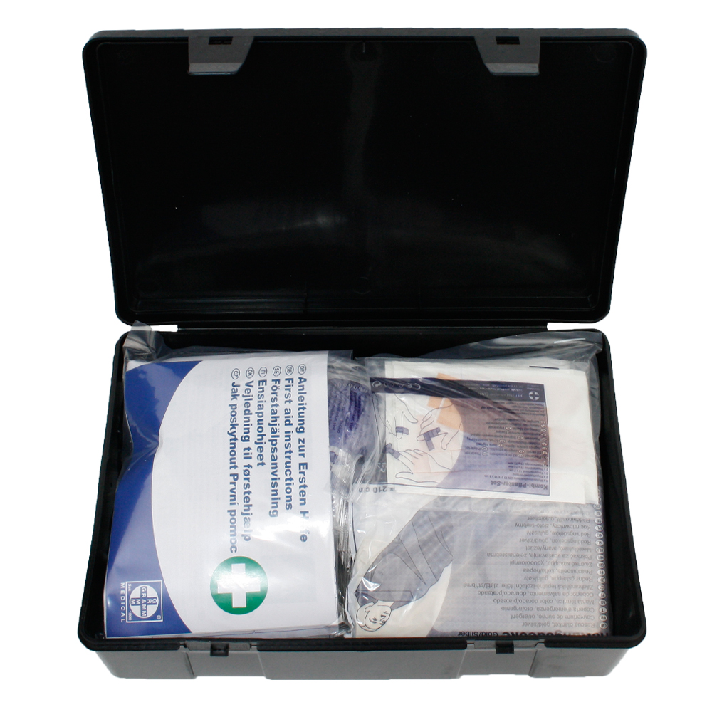 Dieser Kfz-Verbandskasten ist nach DIN 13164 und gesetzlicher Vorschrift der StVZO genormt. Er besteht aus Kunststoff und enthält neben einer Rettungsdecke alle anderen im Straßenverkehr vorgeschriebenen Erste-Hilfe-Utensilien in Folientaschen verpackt. So ist man im Ernstfall gut gerüstet und die notwendigen Erste-Hilfe-Materialien sind schnell und übersichtlich zur Hand.