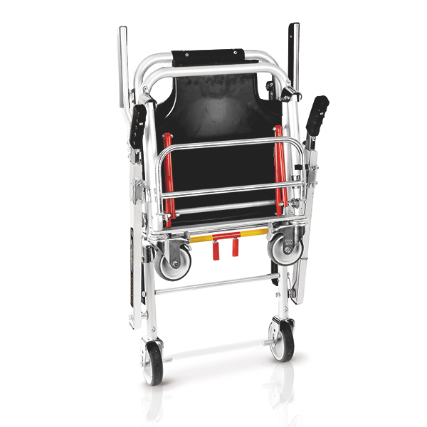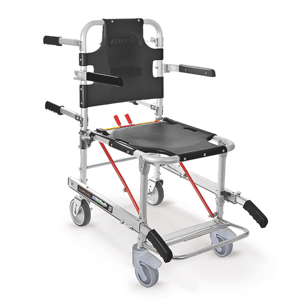 • Bei engen Raumverhältnissen erleichtert Ihnen dieser Tragestuhl den Transport sitzender Patienten.