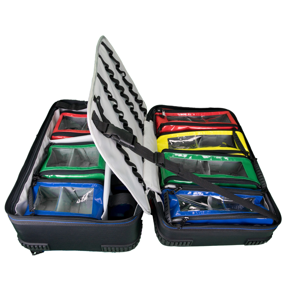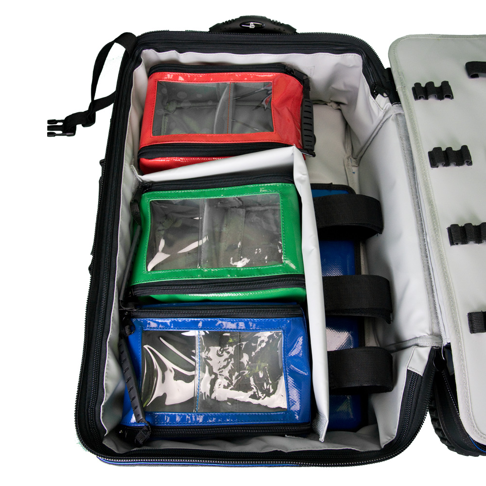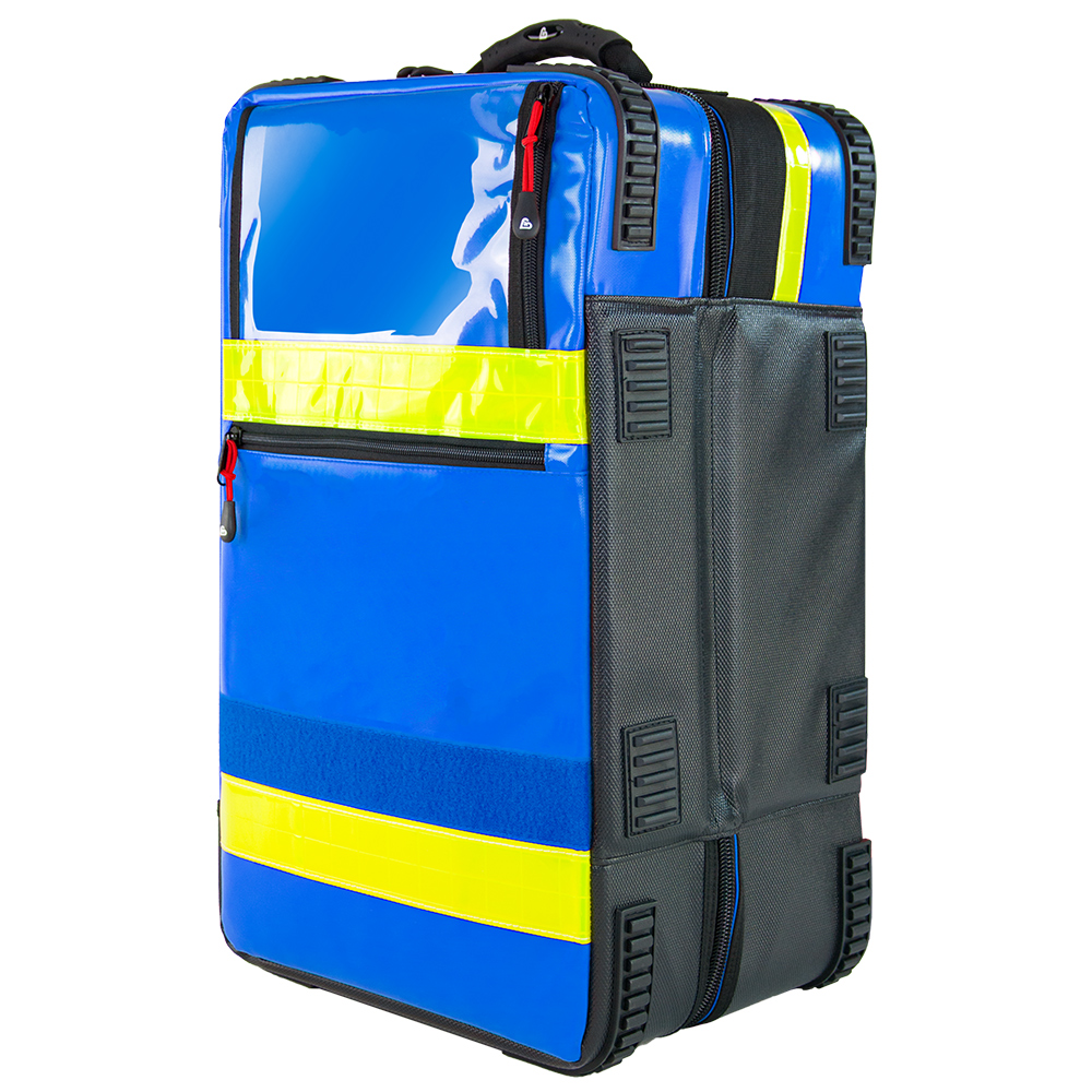 Diese flexible Notfalltaschen- Rucksackkombination kann sowohl als Notfallrucksack als auch als Notfalltasche mit verstaubaren Schultergurten verwendet werden. Außen finden Sie unser bewährtes Planenmaterial vor, welches an übermäßig beanspruchten Stellen, wie z. B. am Boden, verstärkt wurde um eine noch längere Haltbarkeit und Strapazierfähigkeit zu erreichen. Im Innenraum befinden sich sieben farblich kodierte Modultaschen mit Sichtfenster, sowie eine O2-Flaschenhalterung (für Flaschen mit bis zu 2 Liter Fassungsvermögen). Außerdem können Sie die Front des Objekts um 180° aufklappen und haben dank des flexibel einstellbaren Trennelementes alles schnell im Blick und zur Hand.