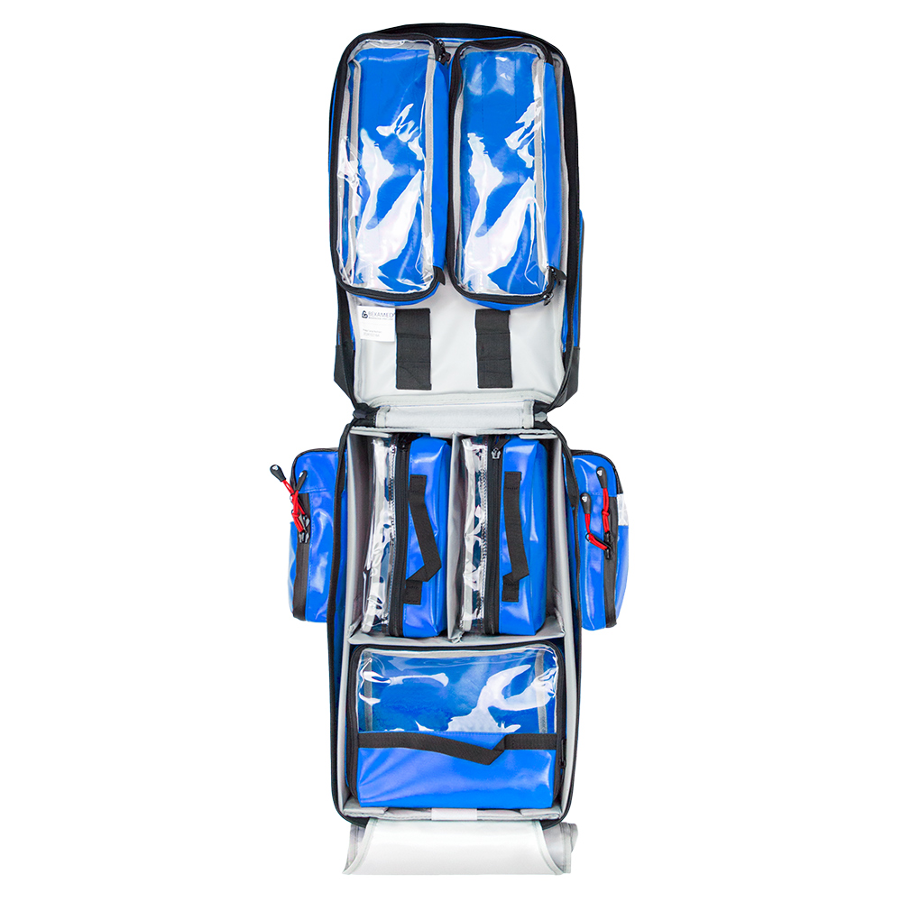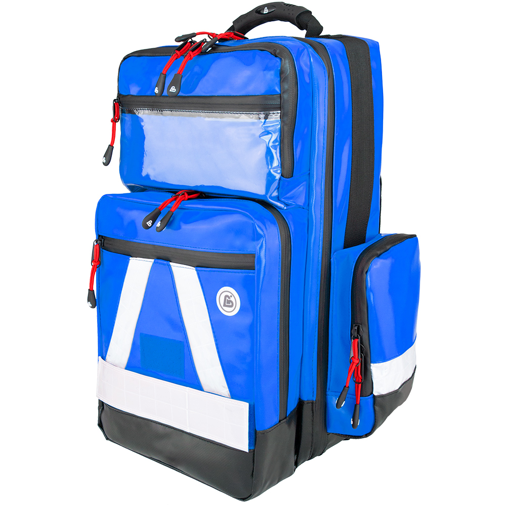 HERZmed Waterstop Notfallrucksack PRO BLUE PLANE - Unser meistverkauftestes Modell unter den WaterStop Notfallrucksäcken. Durch seine großzügigen Abmessungen und sein kluges Design ist er immer dort im Einsatz, wo schneller Handlungsbedarf von Nöten ist.